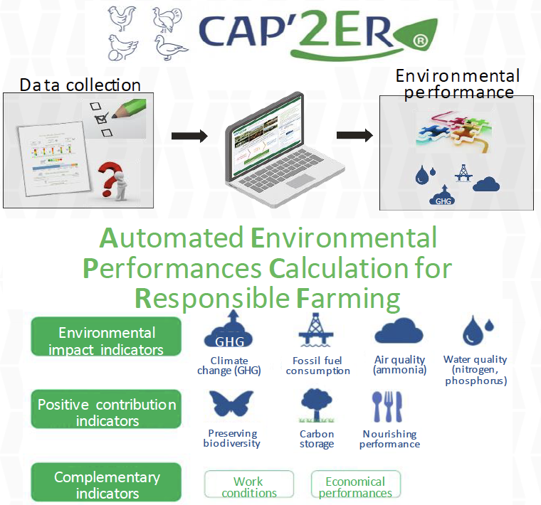 The preservation of the environment is a main challenge for the agricultural sector, including for broiler chicken farming, both in terms of reducing environmental impact and increasing the value of the services provided. The CAP’2ER® environmental diagnostic assessment tool has been adapted by ITAVI for the poultry sector to assess its contributions: it means Automated Environmental Performances Calculation for Responsible Farming. This was made in collaboration with IDELE who is the initiator of the approach for Ruminant species. This two-level tool allows farmers to assess the environmental footprint of their farm and to identify action levers to improve their impact. This good practice has been identified by the French Broiler Innovation Network in response to the “carbon neutrality and environmental footprint” challenge selected with regards to the theme Environmental sustainability of the BroilerNet project.